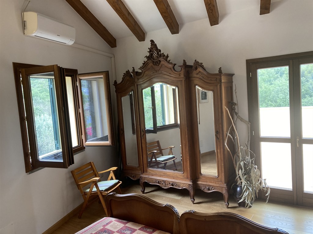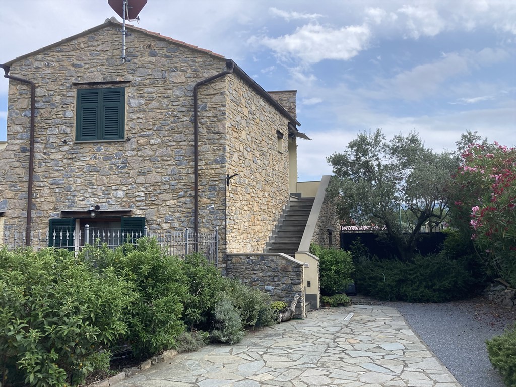 Albenga - Campochiesa : a 3 Km dal centro città, proponiamo questo stupendo alloggio in villa composta da solo tre unità abitative. Frutto di una sapiente riedificazione di un vecchio rustico , oggi si presenta come un luminosissimo ed accessoriatissimo immobile con ingressi indipendenti, giardini di proprietà, posti auto e grandi autorimesse. L'alloggio, posto al primo ed ultimo piano di questo originale fabbricato in pietra, è composto da un ingresso su disimpegno, un grande ambiente living con cucina a vista e caminetto, due camere da letto e due bagni, entrambi finestrati. Dalla zona giorno si accede a due grandi terrazze di cui una munita di cucina esterna; una terza terrazza da cui godere di una meravigliosa vista panoramica è accessibile attraverso la scala esterna. Il tetto di copertura è realizzato in travi di legno lamellare a vista con idonea coibentazione. Ampio uso di pietra locale sulle balaustre delle terrazze. Serramenti a taglio termico in legno con doppi vetri. Termoautonomo con riscaldamento a pavimento e caldaia a condensazione, aria condizionata. Completano la proprietà un gradevole giardino piantumato, un posto auto e una grande autorimessa di circa 35 mq.