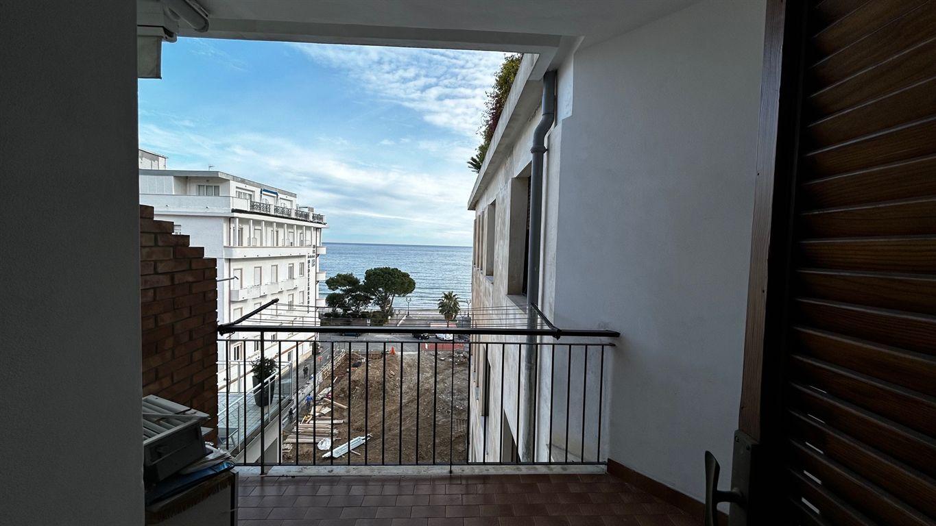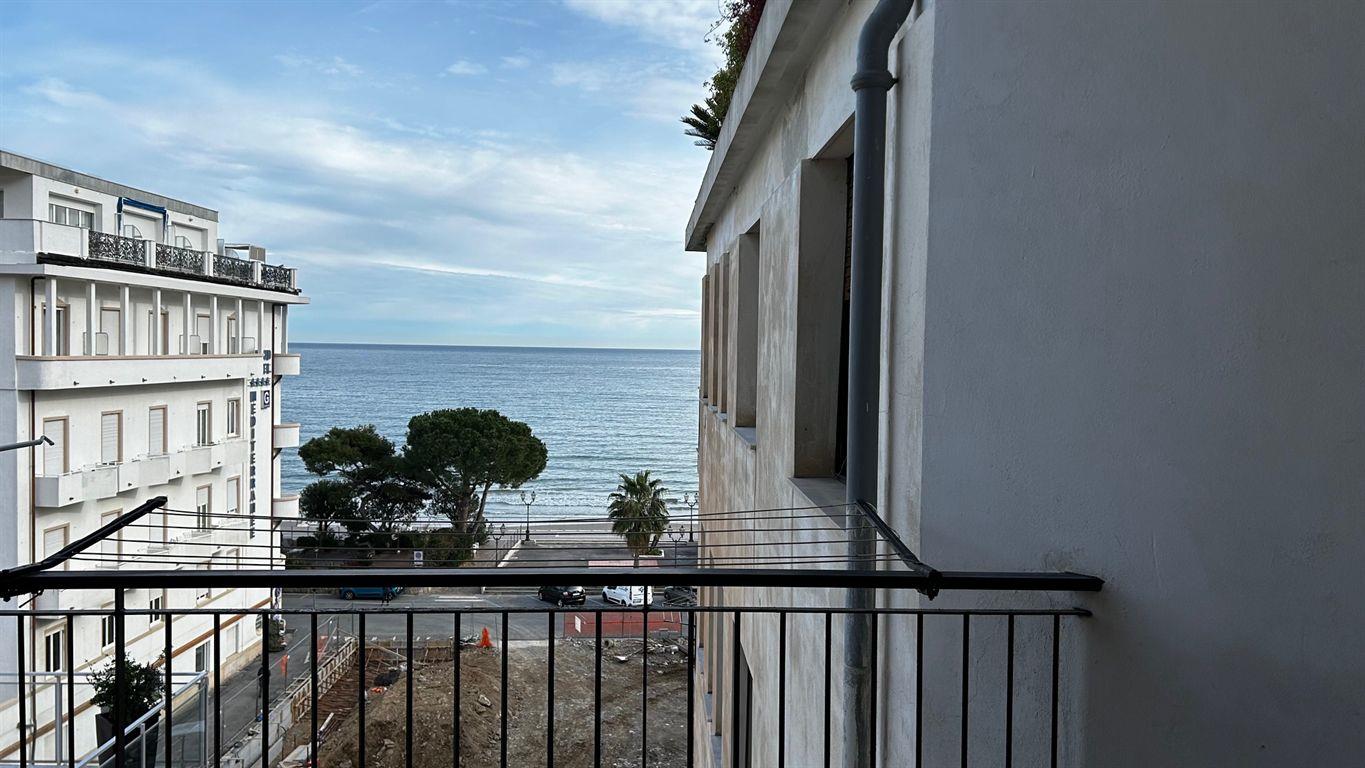 Siamo lieti di propone in vendita nella zona di ponente, e più precisamente in Corso Europa, appartamento al piano quarto con vista mare dal terrazzino vivibile. La spiaggia dista meno di 50 metri; il budello ed i negozi sono raggiungibili a piedi in soli 10 minuti. L’unità abitativa ha una superficie di circa 100 mq distribuita in ingresso disimpegno, soggiorno con angolo cottura e terrazzino vivibile vista mare, due camere matrimoniali, una camera da letto con bagno privato e balcone, secondo bagno. L’alloggio possiede due aree di esposizione. E’ un immobile ben esposto al sole e molto illuminato. Dispone di termo autonomo, aria condizionata e ascensore. Completamente ristrutturato con ottime finiture. Posizione molto comoda e molto tranquilla.