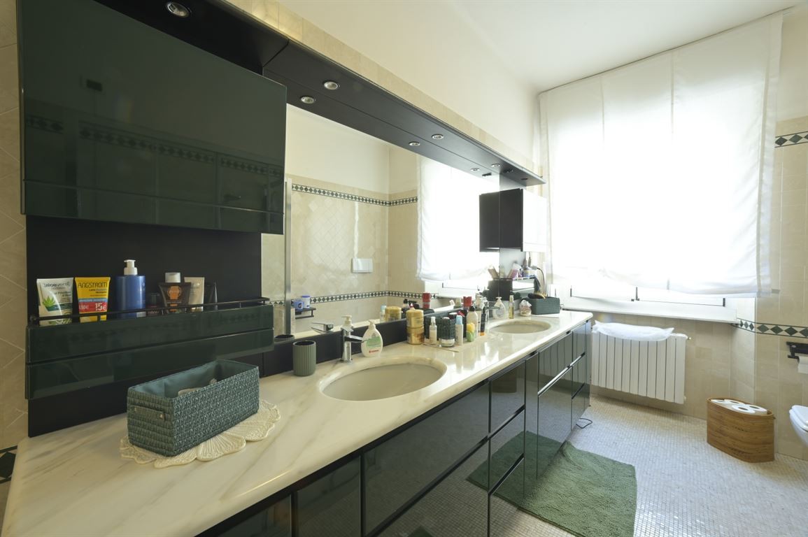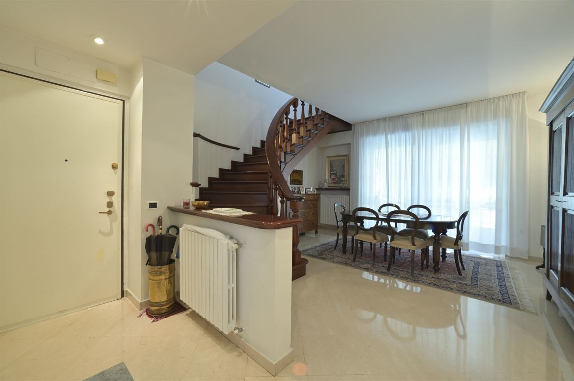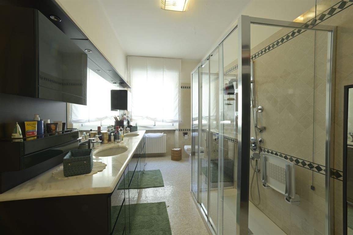 Proponiamo in vendita esclusiva elegante appartamento in pieno centro dotato di ampia metratura, 235 mq distribuiti su due livelli collegati tra di loro da una magnifica scala in legno massello. Palazzina recentemente restaurata con tetto rifatto circa 18 anni fa, servita da ascensore, due cantine di pertinenza esclusiva dell'appartamento. Al piani primo ( 2° fuori terra ) troviamo l'ingresso su luminoso soggiorno , grande cucina abitabile, un ampio bagno finestrato, un bagno di servizio, due camere da letto, una camera studio e due balconi. Al piano superiore ampio soggiorno, due grandi camere matrimoniali, una terza cameretta singola, un grande bagno e due balconi. Pavimentazione di pregiato marmo e mosaico al piano primo e parquet in tutto il piano secondo. Infissi di nuova generazione. Si presta sia per una casa residenziale che per una casa vacanza. Ottima posizione !