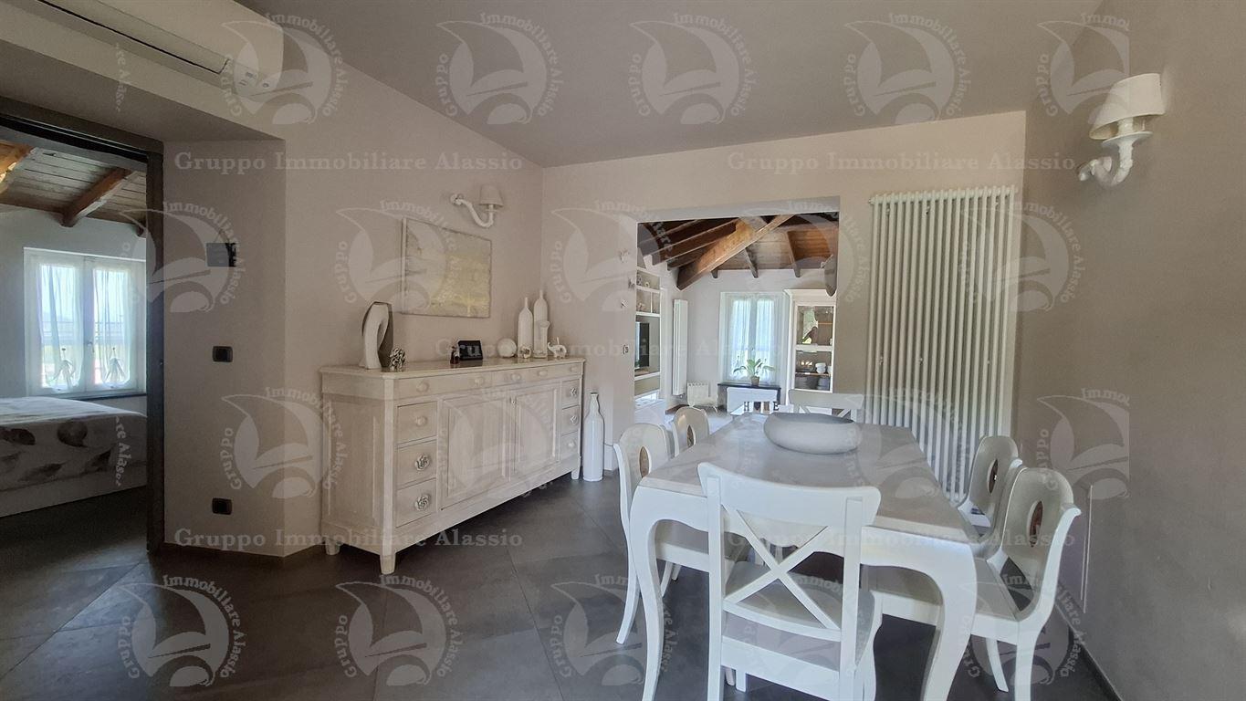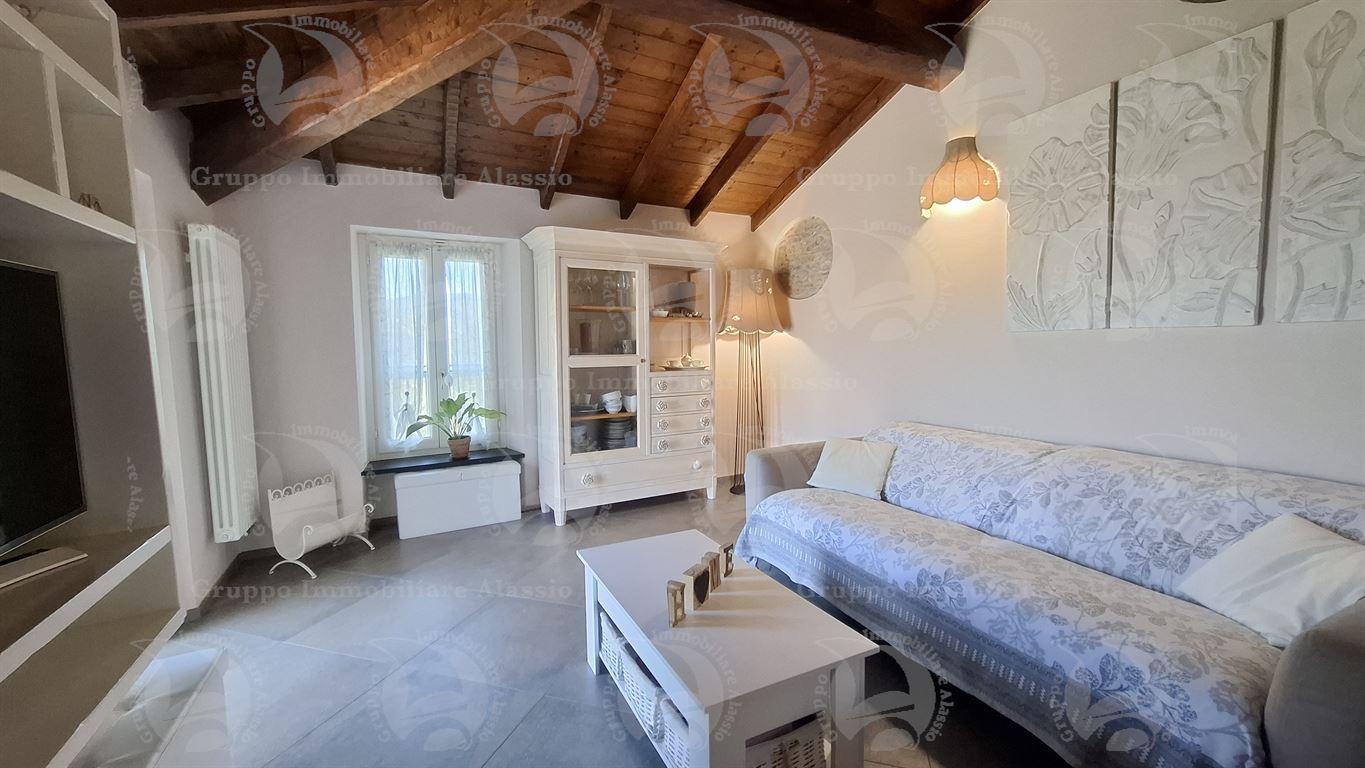 Garlenda, proponiamo appartamento indipendente situato a pochi passi dalla Club House del Golf. L'appartamento che vi proponiamo fa parte di un'antico rustico in Borgata Praglione, oggetto di un'attenta e totale ristrutturazione. Questo raffinato immobile si compone di: ingresso su una grande zona giorno, suddivisa in soggiorno, con vista panoramica verso la collina di sud-ovest e scorcio di vista mare, zona pranzo con accesso al primo terrazzo abitabile e cucina a vista, inoltre qui troviamo la camera da letto padronale con doppia finestra e cabina armadio, un bagno finestrato e la seconda camera da letto con bagno privato. La comoda scala in muratura ci porta al piano superiore dove troviamo la terza camera da letto con bagno finestrato ed il secondo terrazzo, ottimamente esposto al sole. La casa viene venduta arredata di angolo cottura e arredo fisso su misura. Completano la proprietà due comodi posti auto a pochi metri dall'abitazione. L'immobile è dotato di riscaldamento autonomo a gas metano, aria condizionata e non ha nessuna spesa condominiale.