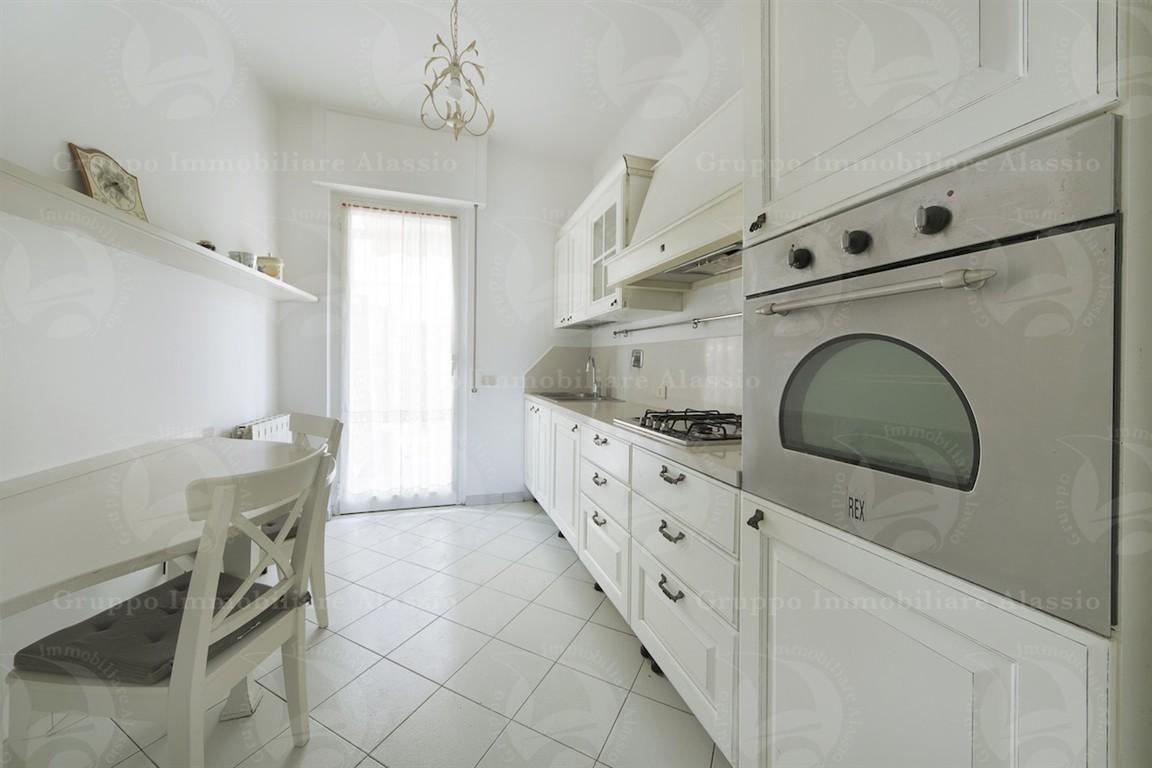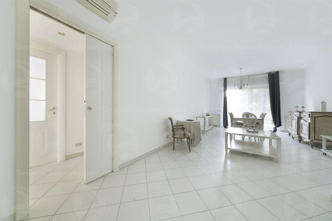 Eleganza e Comfort a Parco San Rocco - Alassio In una delle zone più esclusive e tranquille di Alassio, a pochi passi dal cuore cittadino, proponiamo in vendita un raffinato appartamento di oltre 100 mq situato nella prestigiosa area residenziale di Parco San Rocco. Questa proprietà offre spazi luminosi e ben distribuiti. L’appartamento è composto da:Ampio soggiorno con accesso diretto al giardino privato, perfetto per momenti di relax o convivialità; Cucina abitabile con uscita su un comodo terrazzo privato;Tre camere da letto, ideali per ospitare famiglia e amici; Doppi servizi finestrati, che garantiscono comfort e funzionalità. L’accesso al condominio è preceduto da cancello che introduce a spazi esterni curati, valorizzando il contesto residenziale. La palazzina, di soli tre piani, si distingue per il suo stile signorile e ben curato. Nonostante l’appartamento si trovi al piano terra, gode di una privacy assoluta; la tripla esposizione garantisce inoltre un’eccellente luminosità. Completa la proprietà un posto auto adiacente l'immobile. Possibilità di acquisto di ampio magazzino sotto casa. Se cerchi un’oasi di tranquillità ed eleganza, a due passi dal centro di Alassio, questa è la casa perfetta per te. Contattaci per maggiori informazioni o per organizzare una visita!