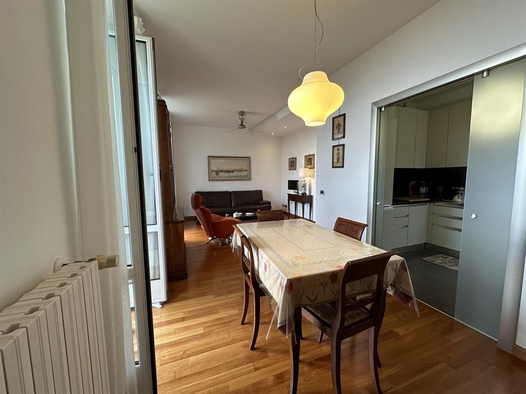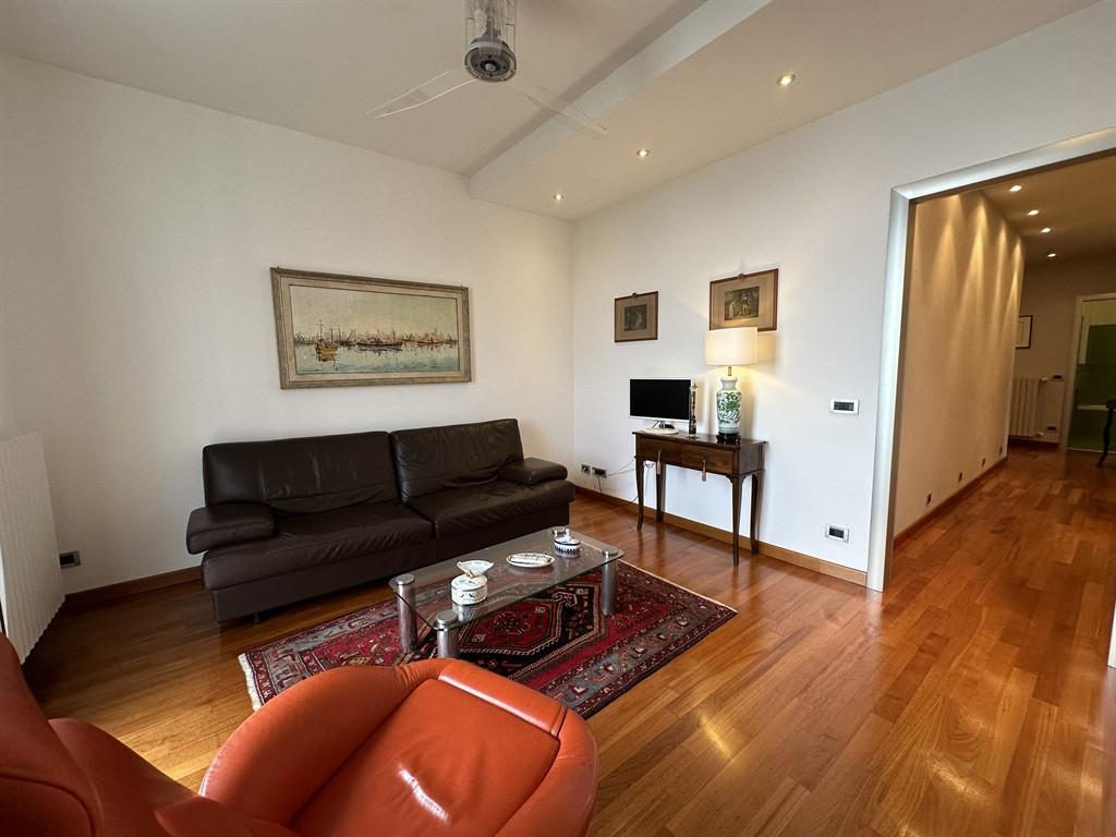 Nella splendida cornice di Parco Fuor del Vento, alla sommità di Via Virgilio, abbiamo il piacere di presentare questo elegante alloggio con una meravigliosa vista mare. Attraverso una piccola corte privata si accede alla zona ingresso che affaccia su un disimpegno da cui parte il corridoio che conduce alle due camere (una con bagno esclusivo), al secondo bagno, al doppio salone ed alla cucina. La zona living è arricchita da due balconi con vista panoramica. Pavimentazione in parquet, termoautonomo, parzialmente arredato. Adiacente alla proprietà troviamo un giardino di proprietà esclusiva di circa 200 mq. con una bellissima vista mare. Nel prezzo anche un box di 30Mq con soppalco (h.200), un posto auto ed un ripostiglio.