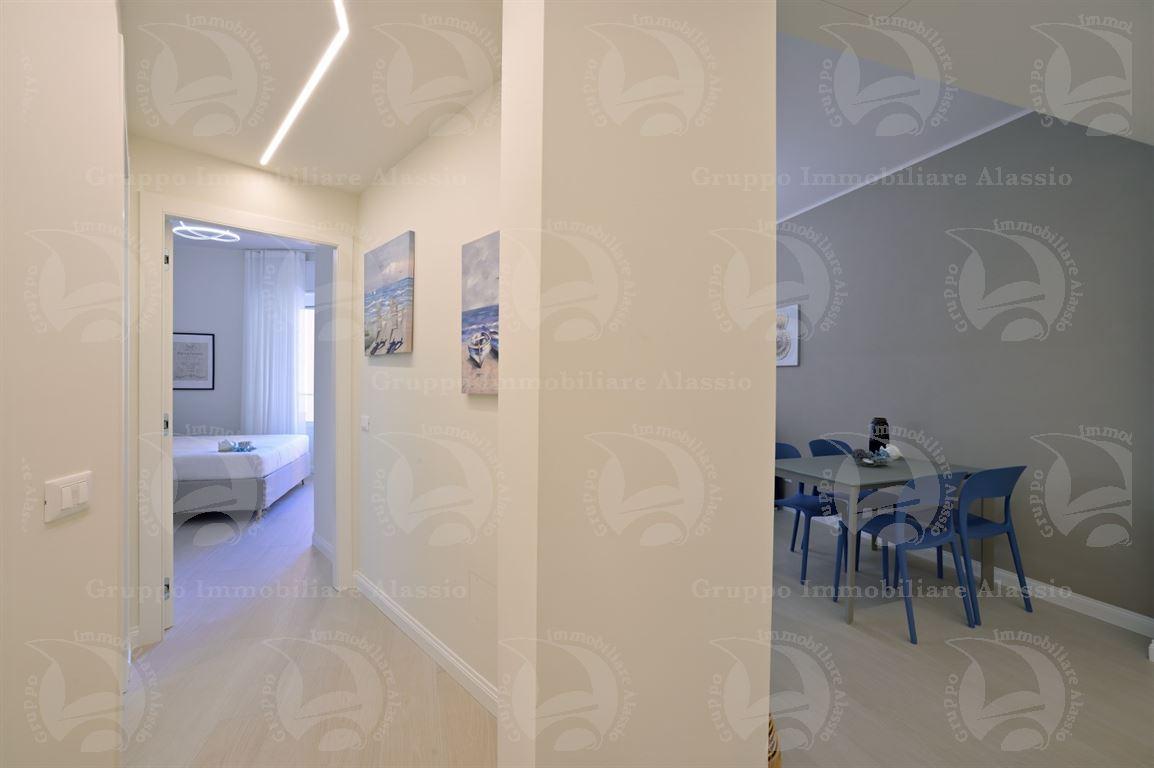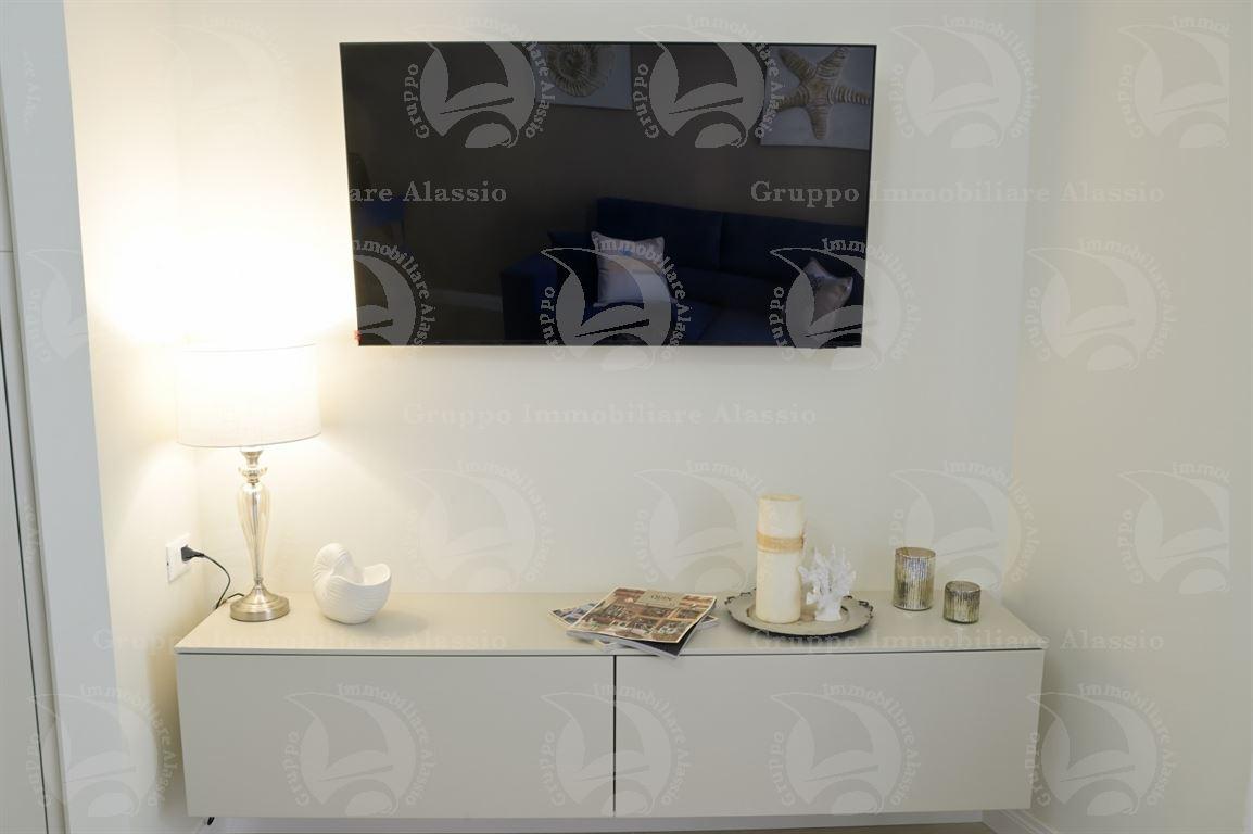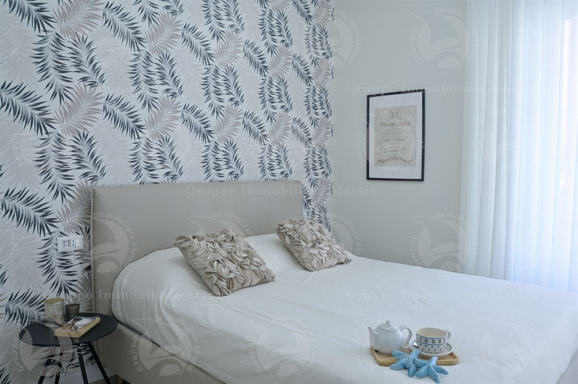 In elegante palazzo a soli 30 metri dalla spiaggia, proponiamo in vendita questo raffinato trilocale totalmente ristrutturato e arredato a nuovo. il soggiorno, dotato di una pregevole cucina a vista, accede direttamente al balcone e gode di un piacevole scorcio di vista mare. la zona notte è dotata di due comode camere da letto, entrambe armadiate. la camera da letto principale ha vista mare ed accesso diretto al balcone. bagno principale finestrato, corredato di un ampio box doccia e di un vano dedicato a lavatrice ed asciugatrice. secondo servizio con armadio/ripostiglio. inoltre: condizionamento e riscaldamento autonomi con pompa di calore, termo arredo elettrici nei due bagni, avvolgibili elettriche con comando centralizzato, serramenti a taglio termico con apertura a ribalta, cucina scavolini, armadio padronale con illuminazione interna, ripostiglio, porta blindata, illuminazione led, letti con il contenitore, mobili bagno con cassetti.